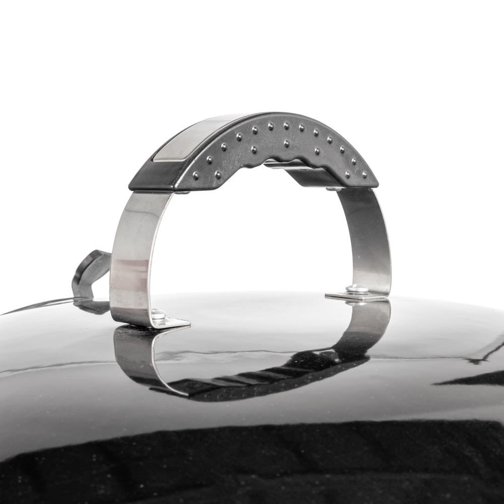 A gömbölyű, acél fedéllel ellátott szerkezetnek köszönhetően könnyen szabályozható a hőmérséklet grillezés közben, a beépített hőmérő pedig lehetővé teszi az ételek optimális sütési hőmérsékletének elérését. A termék oldalsó és alsó polccal van felszerelve, amely további helyet biztosít a konyhai eszközök, fűszerek és edények tárolására. Ennek köszönhetően mindig kéznél van minden, ami a grillezéshez szükséges.