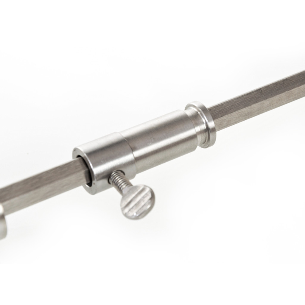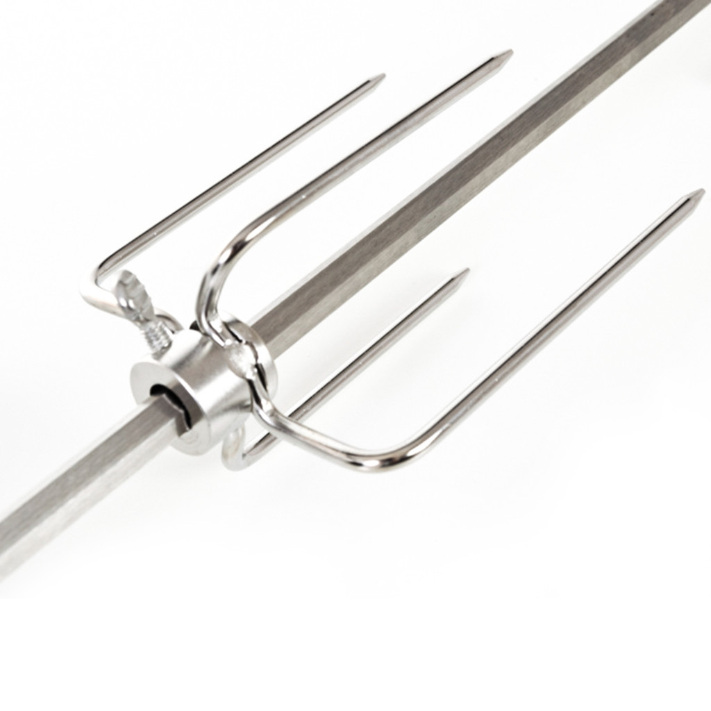 A motoros grillnyárs rozsdamentes acélból készül és mindkét oldalán négy tűvel van ellátva, rögzítő csavarokkal kiegészítve, amelyeknek köszönhetően a tűket saját igényei szerint állíthatja be.