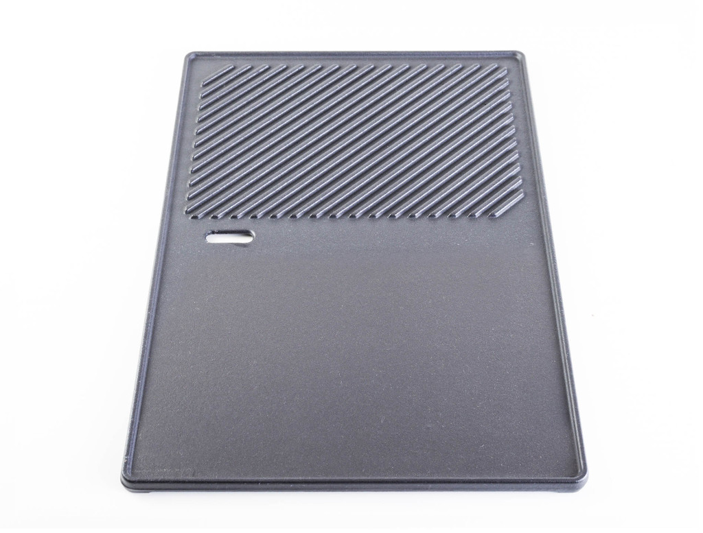 A öntöttvas az egyik legellenállóbb anyagok közé tartozik, melyeket grillezéskor használnak. Ellenál a magas hőmérsékletnek és a karcolásoknak is. A lemez mindkét felén más felületet találunk. Egyik fele sima, melyet leginkább a szeletelt zöldségek, tojások és sajtok grillezésekor használhatunk. Másik fele recés, mely tökéletes alapot biztosít a steakek, nagyobb zöldségek és halak grillezéséhez.