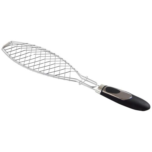 Minőségi, krómozott halsütő grillrács fa nyéllel. Használata lényegesen megkönnyíti a hal grillezését és annak forgatását.