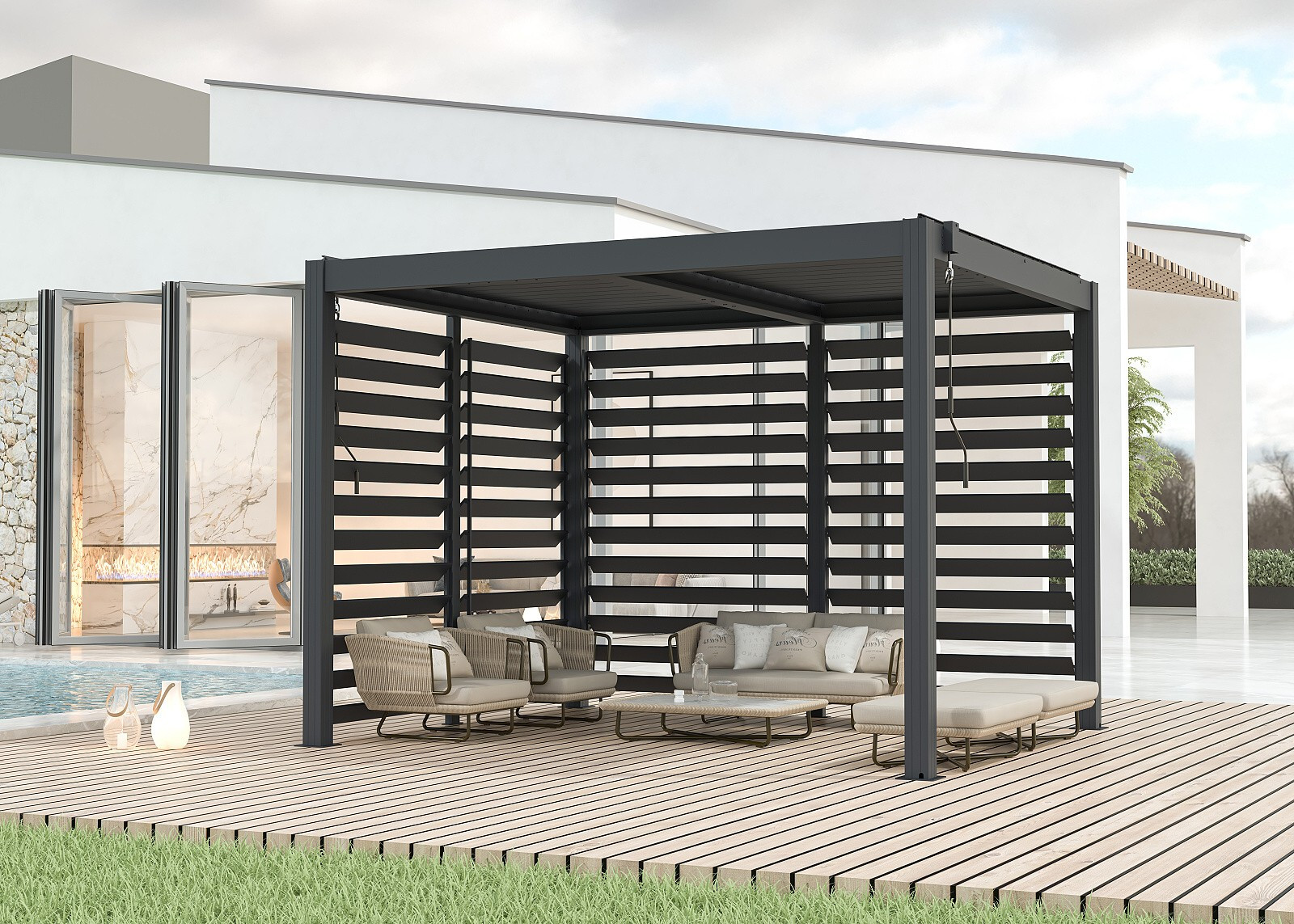 Lamellás oldalfal 2,5 m széles a LANITPLAST BASIC 32 pergolához.
