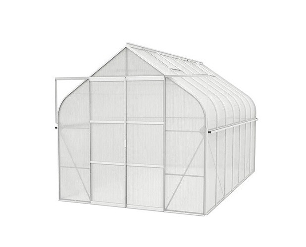 A csomag tartalma kétszárnyú tolóajtók (sz x ma = 1,22 x 2,00 m), AL profilok, üvegezés, horganyzott acél talp, 4x kézi nyitású tetőszellőztető ablak, minden összekötő anyag. Az üvegházhoz számos tartozék megvásárolható - polcok, állványok, kiegészítő szellőzőtető és oldalsó ablakok, automatikus nyitók ezekhez az ablakokhoz, ereszcsatorna készletek, hőmérők, nedvességmérők.