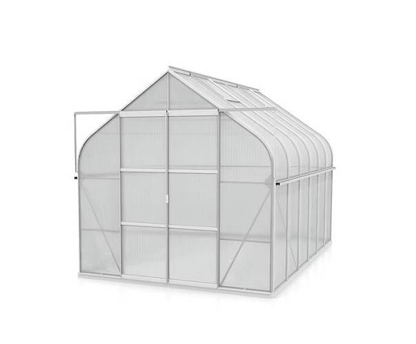A csomag tartalma kétszárnyú tolóajtók (sz x ma = 1,22 x 2,00 m), AL profilok, üvegezés, horganyzott acél talp, 4x kézi nyitású tetőszellőztető ablak, minden összekötő anyag. Az üvegházhoz számos tartozék megvásárolható - polcok, állványok, kiegészítő szellőzőtető és oldalsó ablakok, automatikus nyitók ezekhez az ablakokhoz, ereszcsatorna készletek, hőmérők, nedvességmérők.