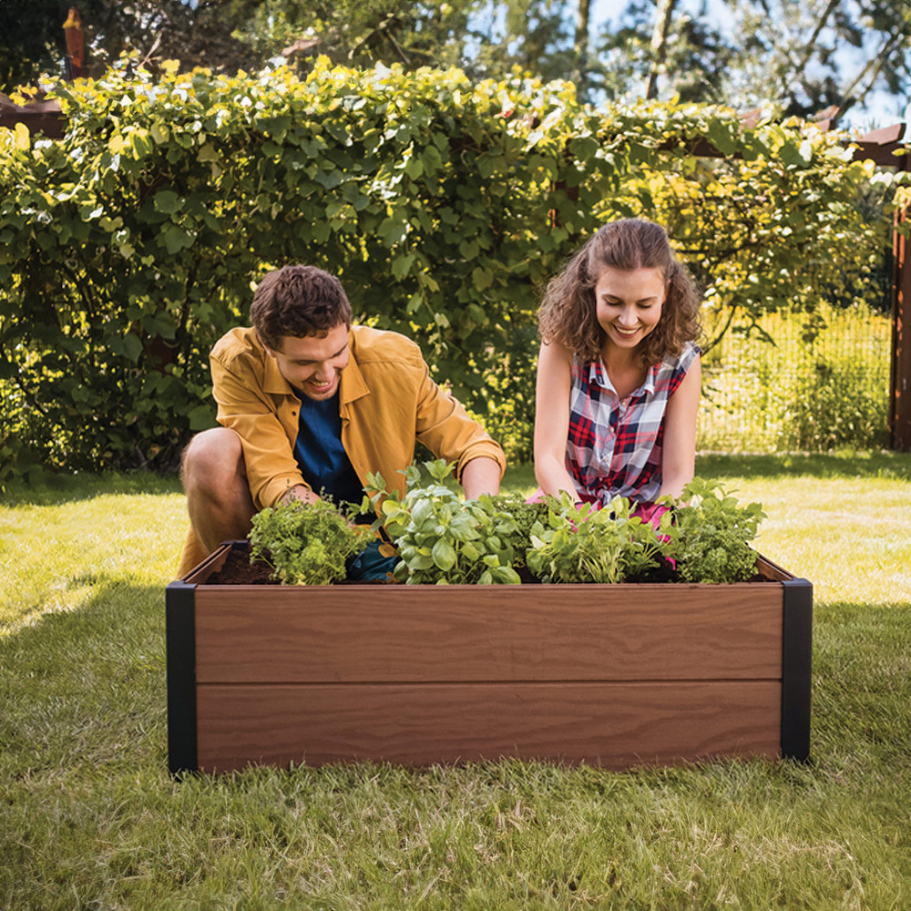a Maple magasított virágágyást, amely a Maple Garden Bed termékcsalád részeként a zöldség- és virágtermesztést nemcsak szórakoztatóvá, hanem egyszerűvé és gyönyörűvé is teszi a kertedben. A barna színű, elegáns kialakítású virágágyás a Keter által kifejlesztett fejlett Evotech™ kompozit anyagból készült, így garantálja a hosszú távú tartósságot és az időjárásállóságot.