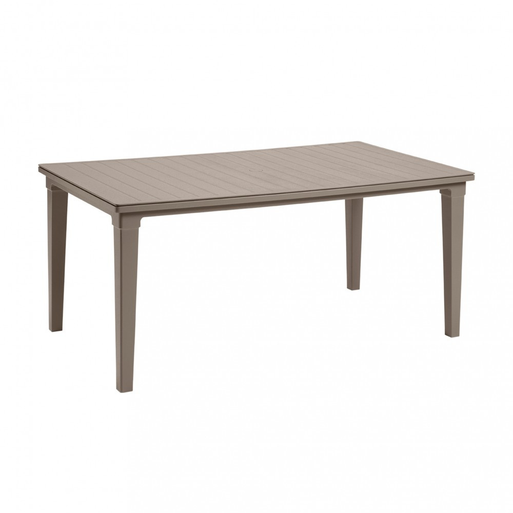 A Futura kerti asztal ideális elemként szolgál a kert, erkély vagy terasz díszítéséhez. Egyszerű formája és minimalista megjelenése teszi univerzálissá és bármilyen elrendezéshez alkalmazkodik. Praktikus és olcsó megoldás , melelsleg egész évben a szabadban állhat. Maga az asztal azt a benyomást kelti, hogy fából készült, de valójában egy remek minőségű müanyagból lett létrehozva.