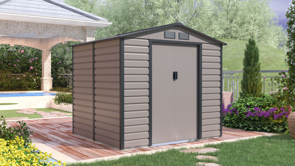 A modern dizájnnak köszönhetően ezek a kerti tárolók minden kertbenjól mutatnak. A kerti tároló bejárati ajtaja elegendően széles, ezért a tárolóba kényelmesen elhelyezheti a szerszámait, kerti talicskáját és a kültéri bútort is.