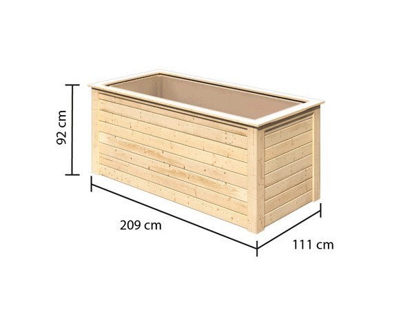Magaságyás KARIBU, sze 209 x m 111 x ma 92 cm, fa 28 mm vastag, a virágládának nincs alja.