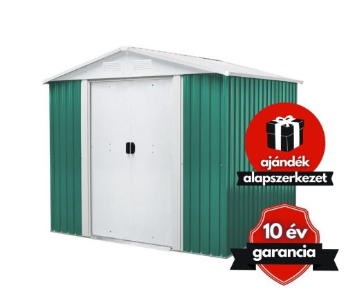 Kerti szerszámtároló ház kb. 3 X 2,5 méter alapterület, fém, zöld-fehér MAXTORE 1012