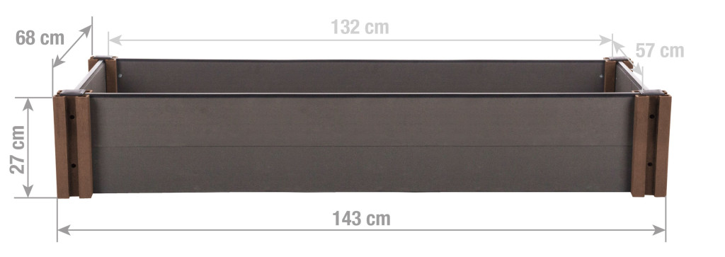 A G21 Crop magaságyás vetésre való területe 0,75 m2, a falak vastagsága 2,5 cm és a magassága 27 cm.