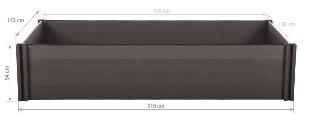 A G21 Crop magaságyás vetésre való területe 2,63 m2, a falak 2,5 cm szélesek és a magassága 54 cm.