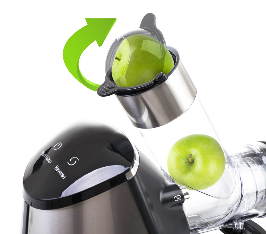 Ne rabolja az idejét a gyümölcsök és zöldségek felszeletelésével! A 7,5 cm átmérőjű nyílásnak köszönhetően a gyümölcsprésbe egész alapanyagokat is tehet.
