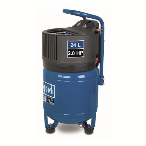 A Scheppach HC 24 V vertikális kompresszor nagyon helytakarékos gép, amely az olajmentes modern motornak köszönhetően minimális karbantartást igényel. Ideális általános otthoni használatra és a kisebb műhelyekbe vagy garázsokba. A tartály a sűrített levegő tárolására szolgál, így a motor csak abban az esetben kapcsol be, amikor a levegőnyomás lecsökken a kívánt szint alá.  A levegőtartálynak köszönhetően, összetettebb munkákat is végezhet a géppel. A kompresszorhoz hozzá lehet csatlakoztatni például a tűzőgépet, a szórópisztolyt (airbrush), a fúvópisztolyt és egyéb pneumatikus szerszámokat is. Az autógumik felfújásánál nagyra értékelhetik a könnyen beállítható nyomásszintet, amit egyszerűen ellenőrizhetnek a beépített manométer segítségével. Az olajmentes technológiának köszönhetően kiválóan alkalmas a söröshordók nyomásának biztosításához is. A kiegészítő markolat, az alacsony súlya és a kerekei megkönnyítik a gép könnyű kezelhetőségét.