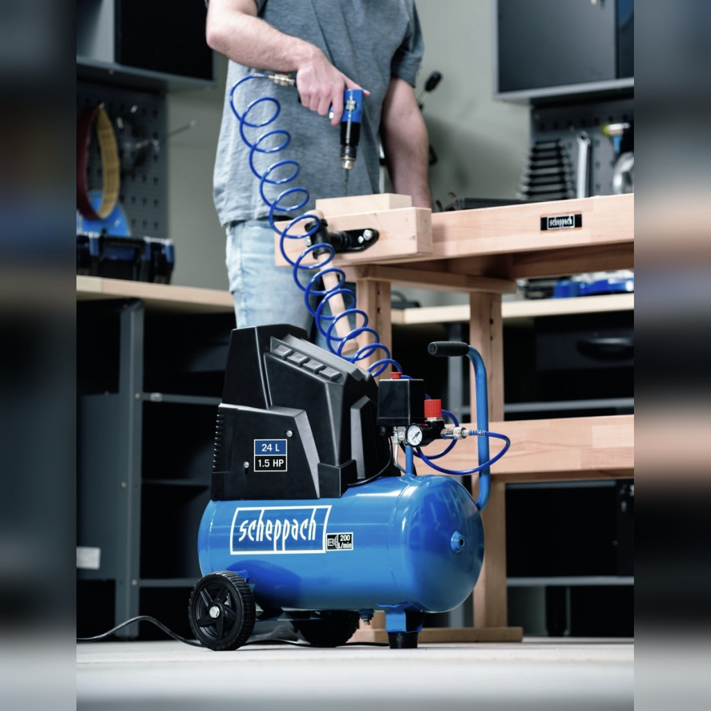 A Scheppach HC 30 OX ideális segítség minden háztartásban. Nagyon egyszerű karbantartást igényel. A kompresszor egyrészt olajmentes technológiával ellátott szivattyúval rendelkezik, így soha nem kell figyelni az olajszintet, másrészt a legmodernebb indukciós (szénkefe nélküli) motorral van felszerelve. Tulajdonképpen ez a motor sem igényel karbantartást, a kisebb darabszámú mozgó alkatrésznek és a még kisebb számú súrlódási felületeknek köszönhetően, ennek a motornak az élettartama többszöröse a hagyományos kommutátoros motorokénak. Ráadásul lényegesen csendesebb. A tartály a sűrített levegő tárolására szolgál, így a motor csak abban az esetben kapcsol be, amikor a levegőnyomás lecsökken a kívánt szint alá. A levegőtartály térfogatának köszönhetően igényesebb munkákat is végezhet a géppel. A kompresszorhoz csatlakoztatható például a tűzőgépet, a mosópisztolyt, a fúvópisztolyt, egyéb pneumatikus szerszámokat, vagy a festékszóró pisztolynak köszönhetően megbirkózik a könnyebb festési munkákkal is. Az autógumik felfújásánál nagyra értékelhetik a könnyen beállítható nyomásszintet, amit egyszerűen ellenőrizhetnek a beépített manométer segítségével. Az olajmentes technológiának köszönhetően kiválóan alkalmas a söröshordók nyomásának biztosításához is. A kiegészítő markolat és a kerekek megkönnyítik a gép könnyű kezelhetőségét.