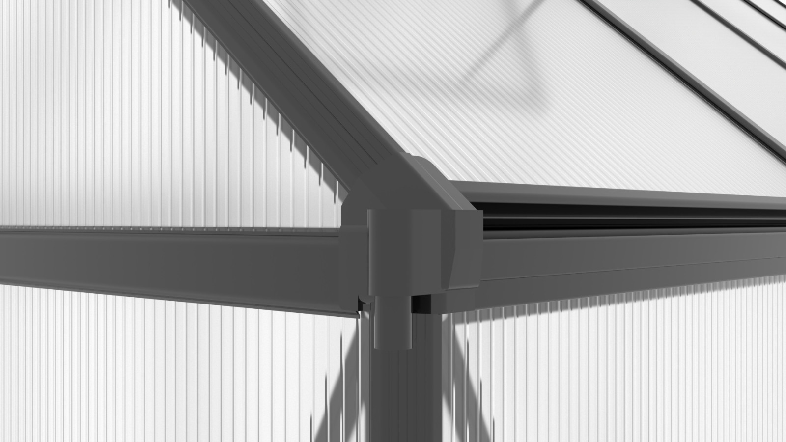 Polikarbonát - prémium 4 mm-es német polikarbonát UV szűrővel (nem válik rideggé és nem sárgul a napon és hidegben). A LANIT PLAST üvegházaiban magától értetődő a 10 év szerződéses kiterjesztett garancia a polikarbonát jégeső miatti törhetetlenségére.