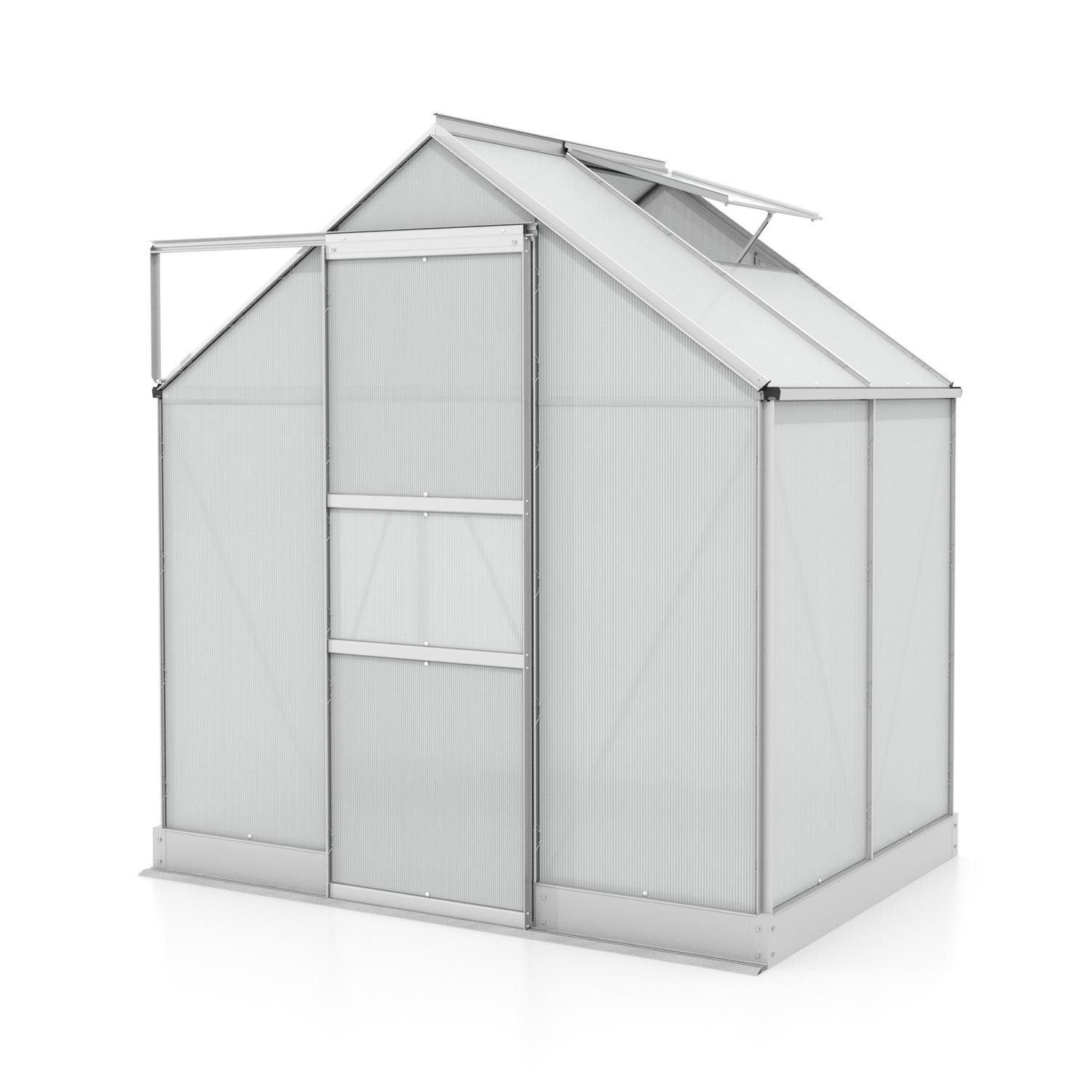 Alumínium üvegház, sz 1,95 x h 1,37 m, ezüst színű, 1x tetőszellőző ablak, 6 mm polikarbonát, horganyzott alap, terület 2,67 m2.