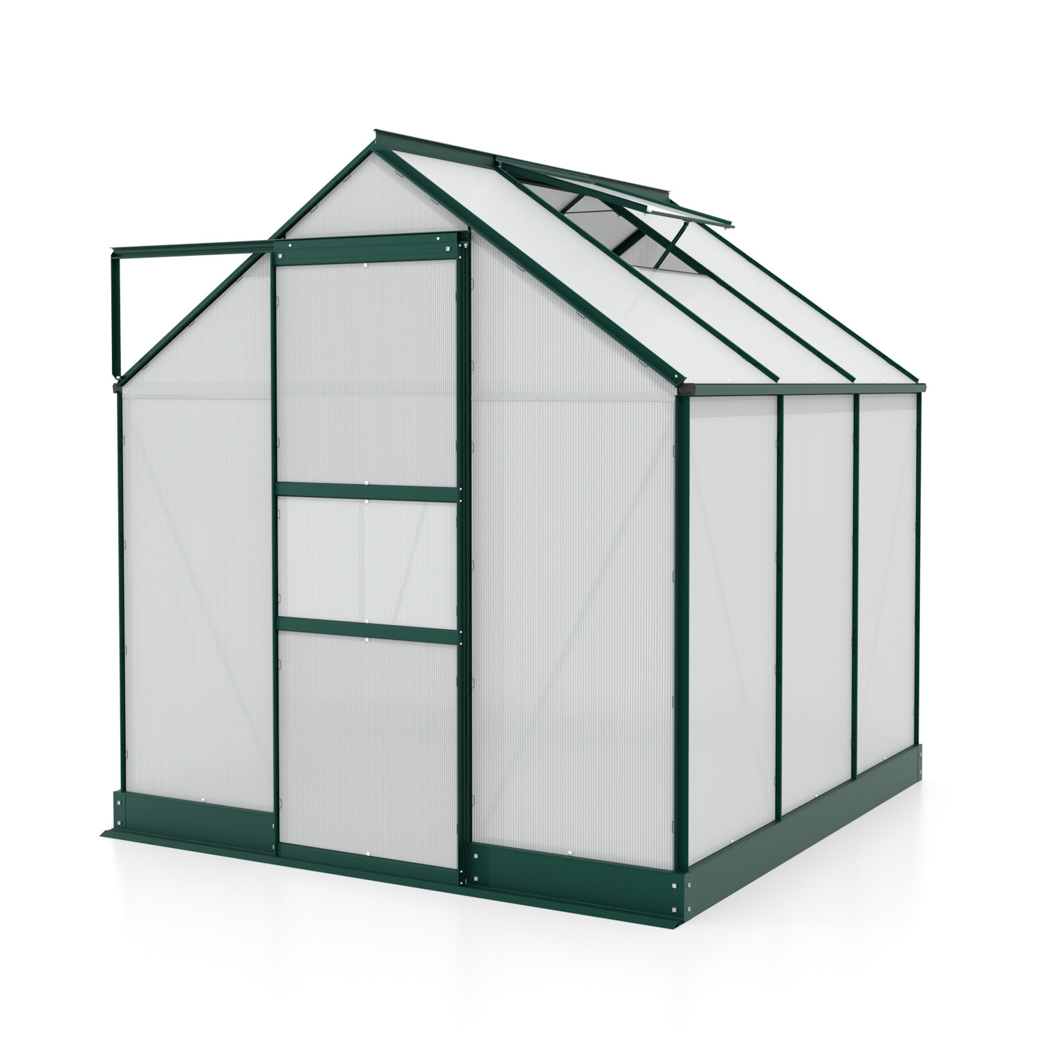 Alumínium üvegház, sz 1,95 x h 1,99 m, zöld színű, 1x tetőszellőző ablak, 4 mm polikarbonát, horganyzott alap, terület 3,88 m2.