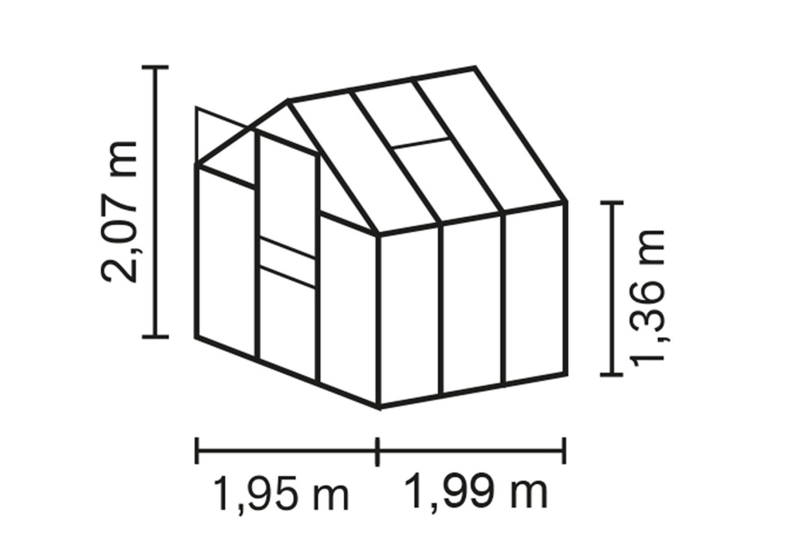 • külső méretek sz 1,95 x h 1,99 x ma 2,07 m